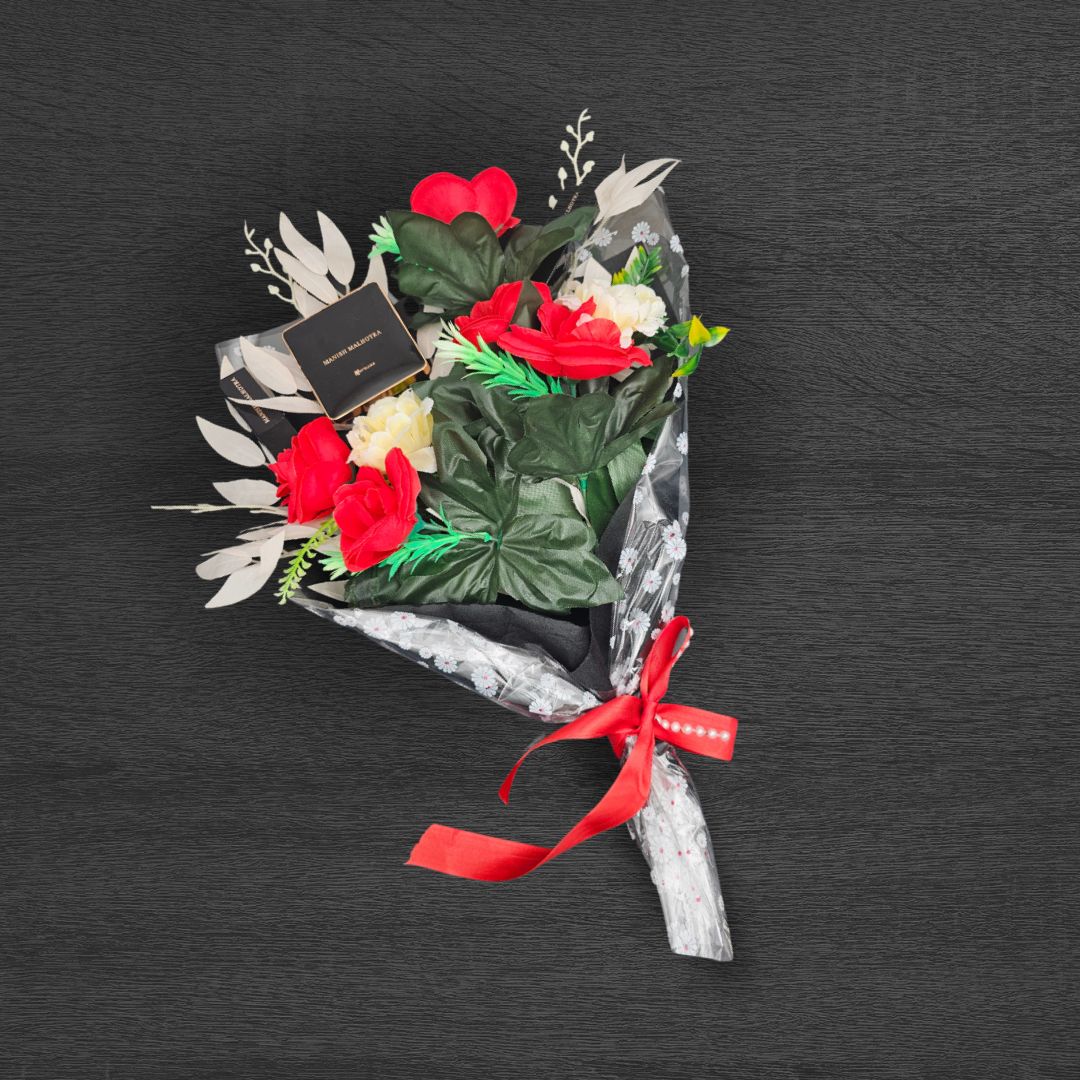 Artificial Flower Bouquet - Exclusive Manish Malhotra Eyeshadow & Lipstick
