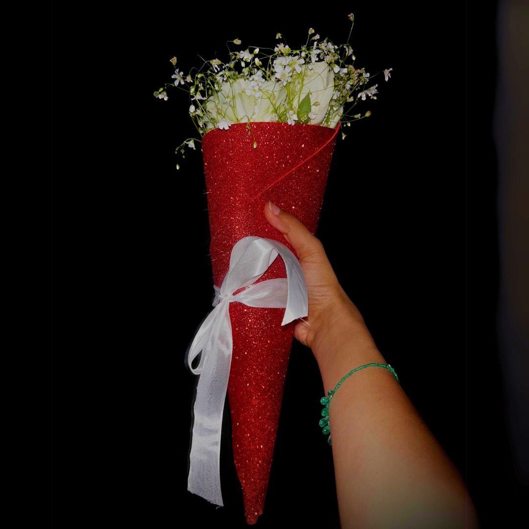 Artificial White Flowers Wrap In Red Glitter Sheet