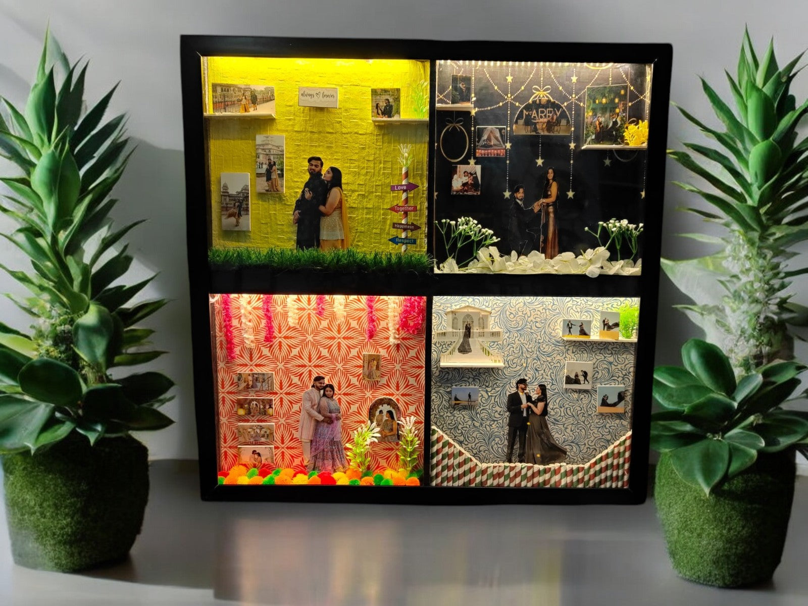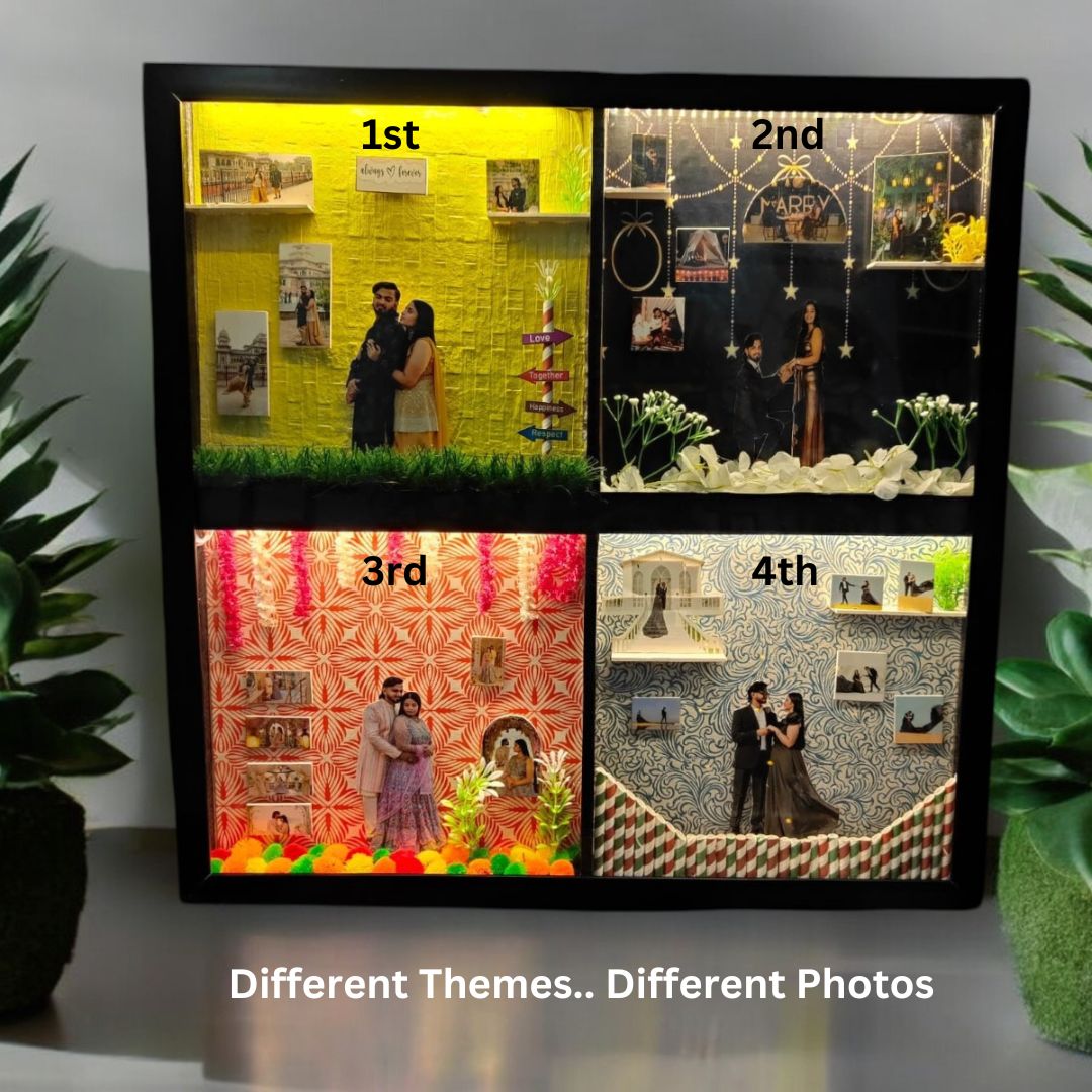 Celebrate your love story with our Customized 4 in 1 LED Photo Frame (24x24 in)—a beautifully crafted masterpiece designed to capture your most precious moments. This unique frame is divided into four sections, each highlighting a different chapter of your journey together. The warm LED lighting enhances the aesthetics, making it a stunning décor piece and a heartfelt gift for your special someone.