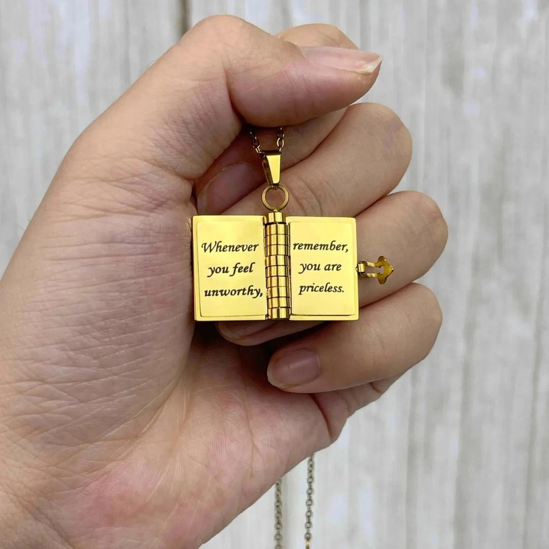Turn your words into a timeless keepsake with our Customized Book Locket With Engraved Message. Designed in the shape of a tiny book, this elegant necklace opens to reveal engraved pages—each carrying a message straight from the heart. A meaningful way to celebrate love, memories, and special moments.