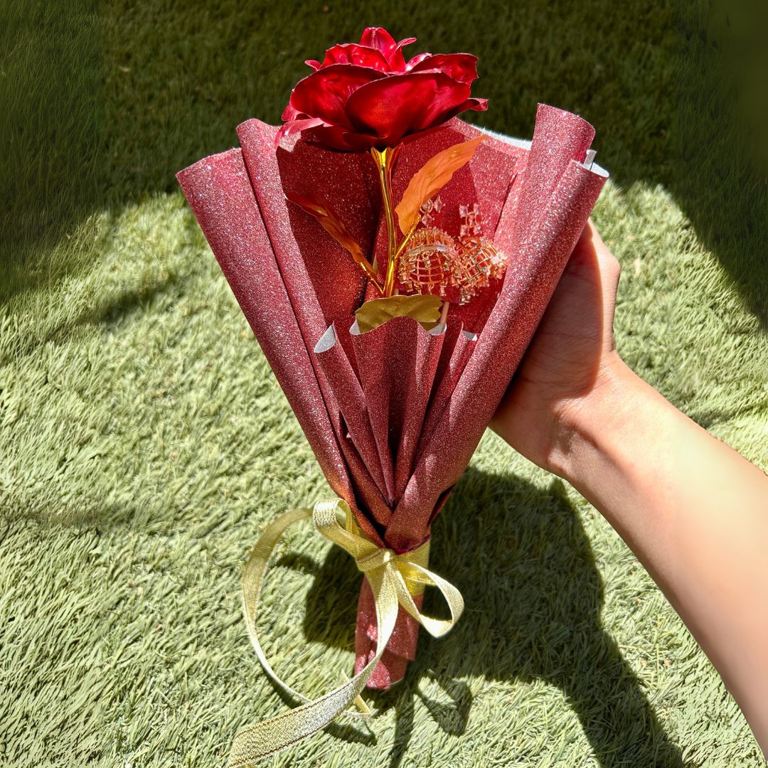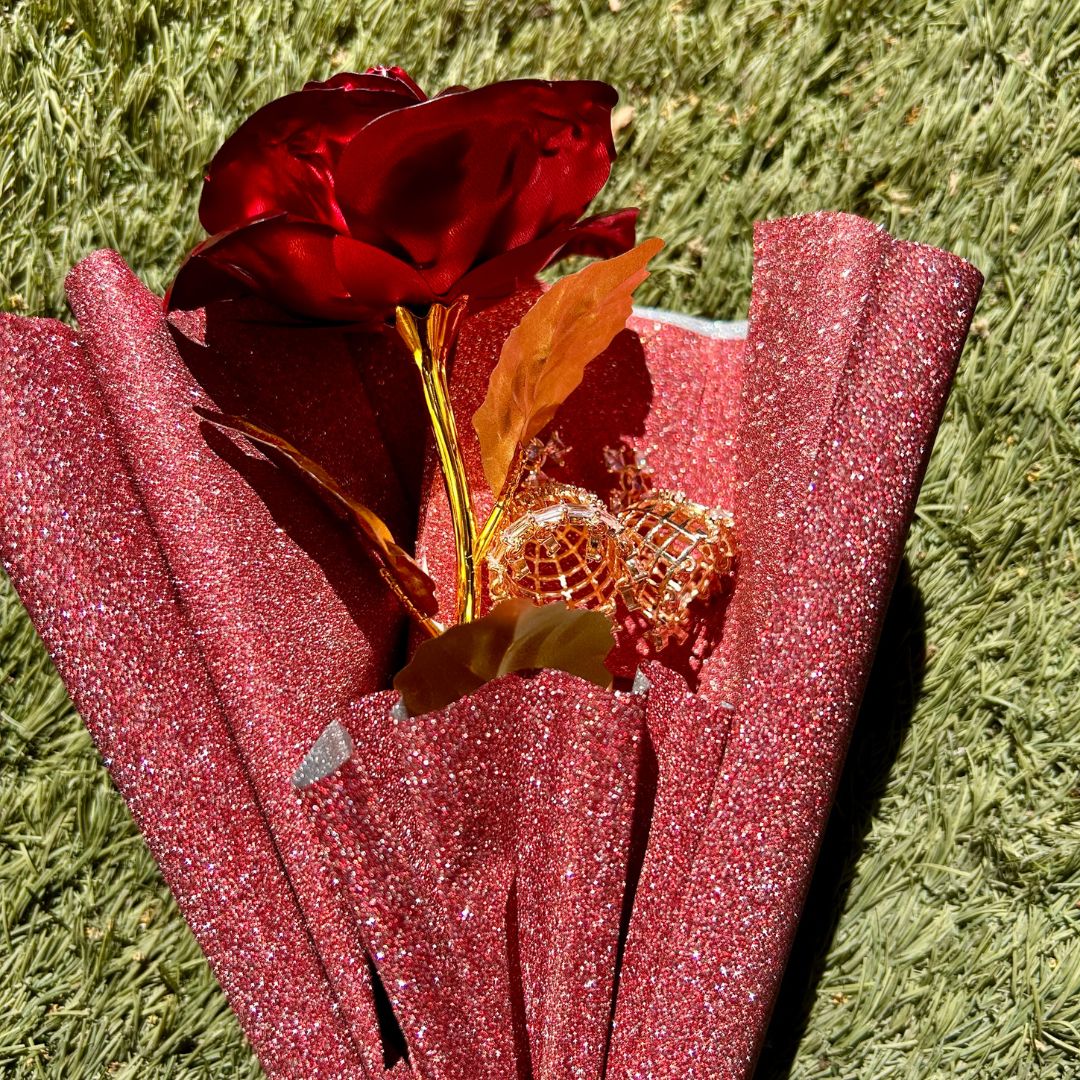 Make a lasting impression with our one-of-a-kind Earring Bouquet featuring a stunning red metal flower as the centerpiece. This unique design isn't just earrings - it's a wearable conversation starter.