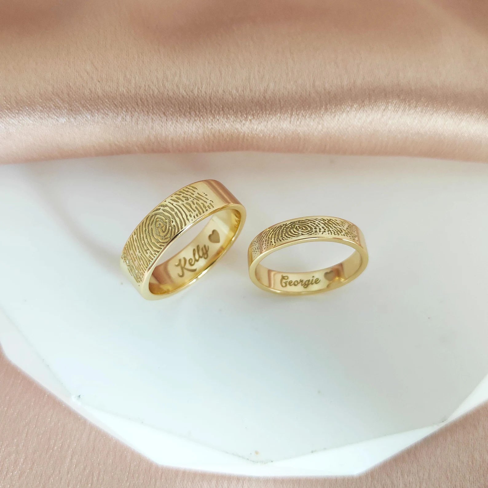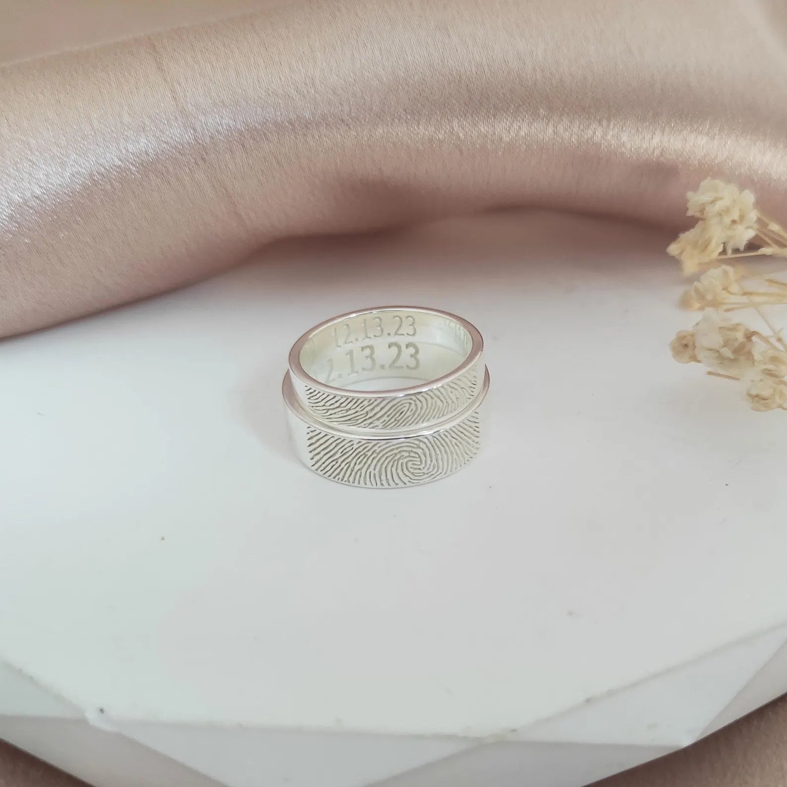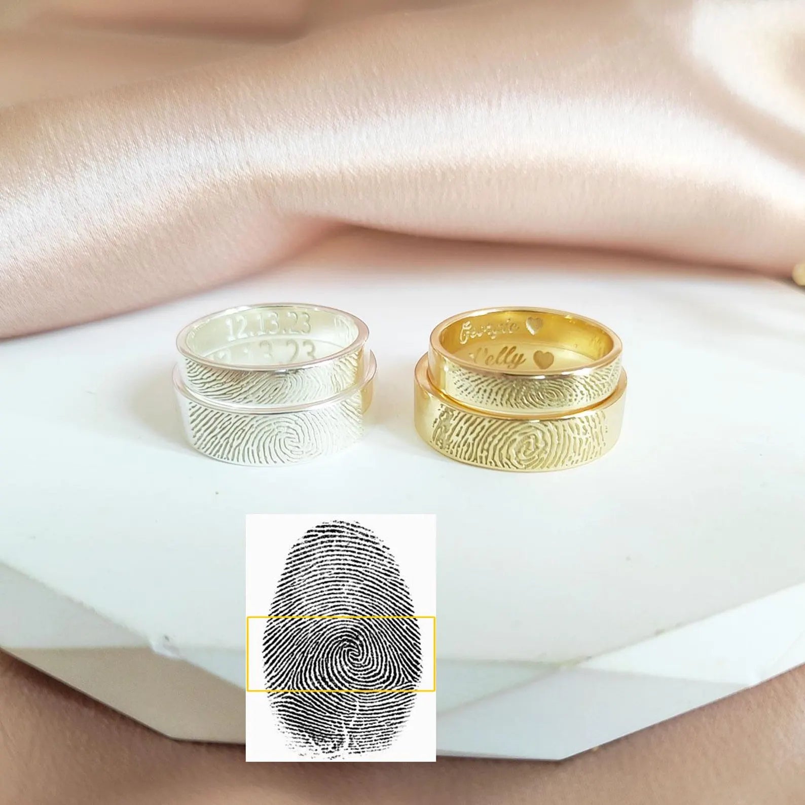 Fingerprint Ring With Inside and Outside Text | Set of 2 for Male and Female