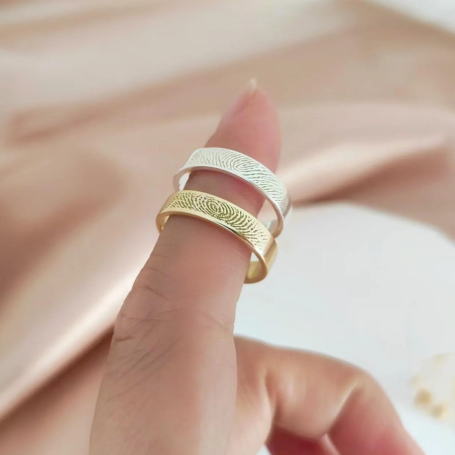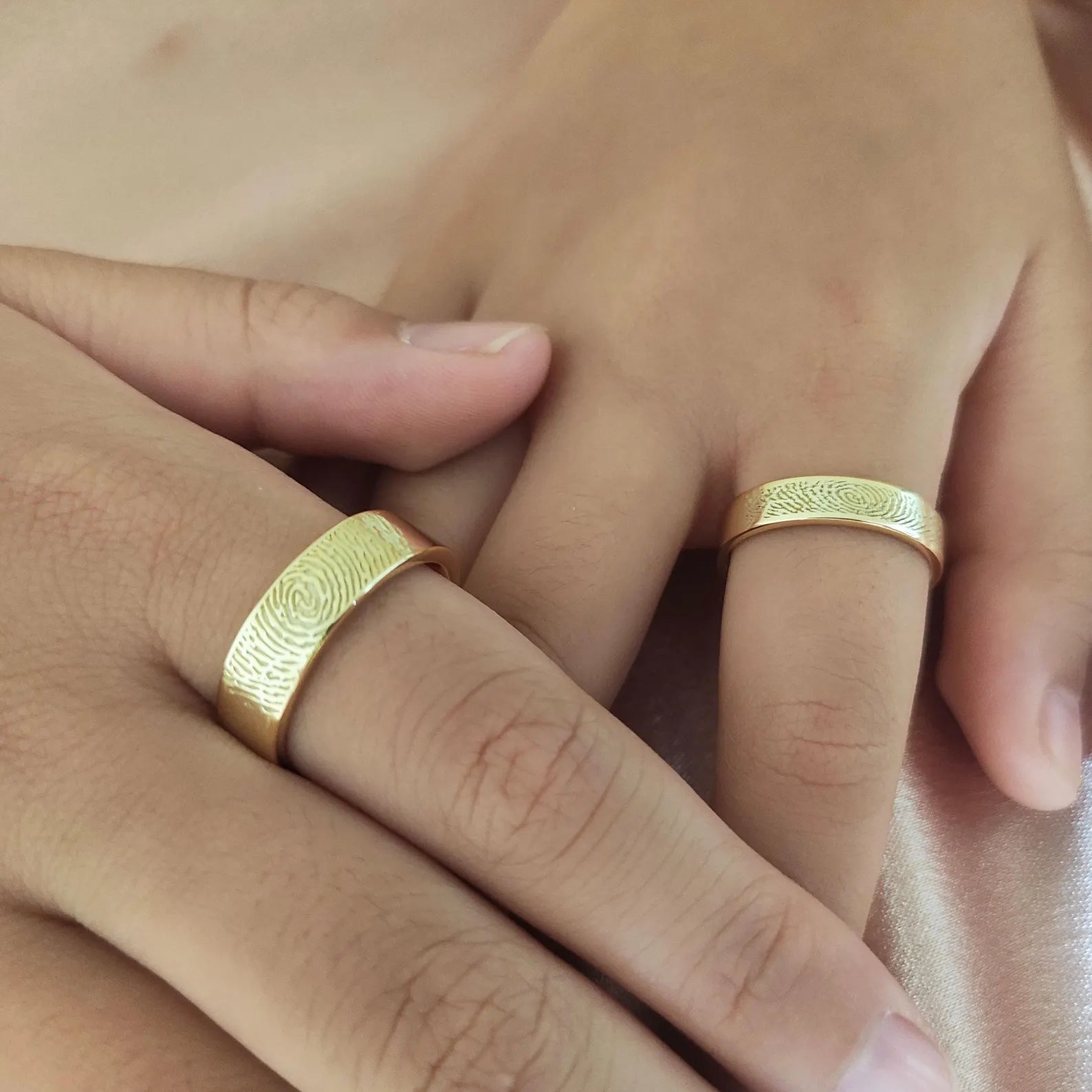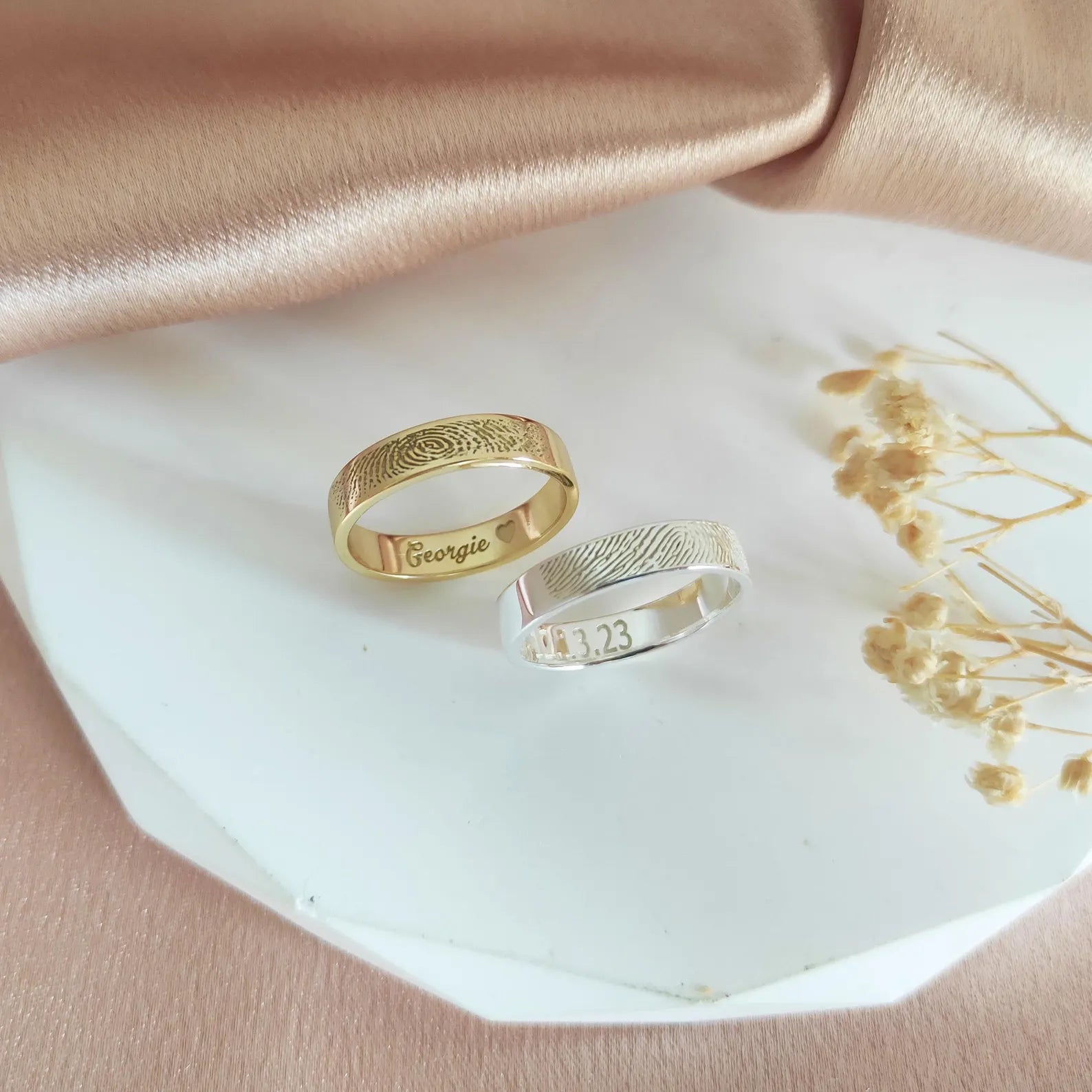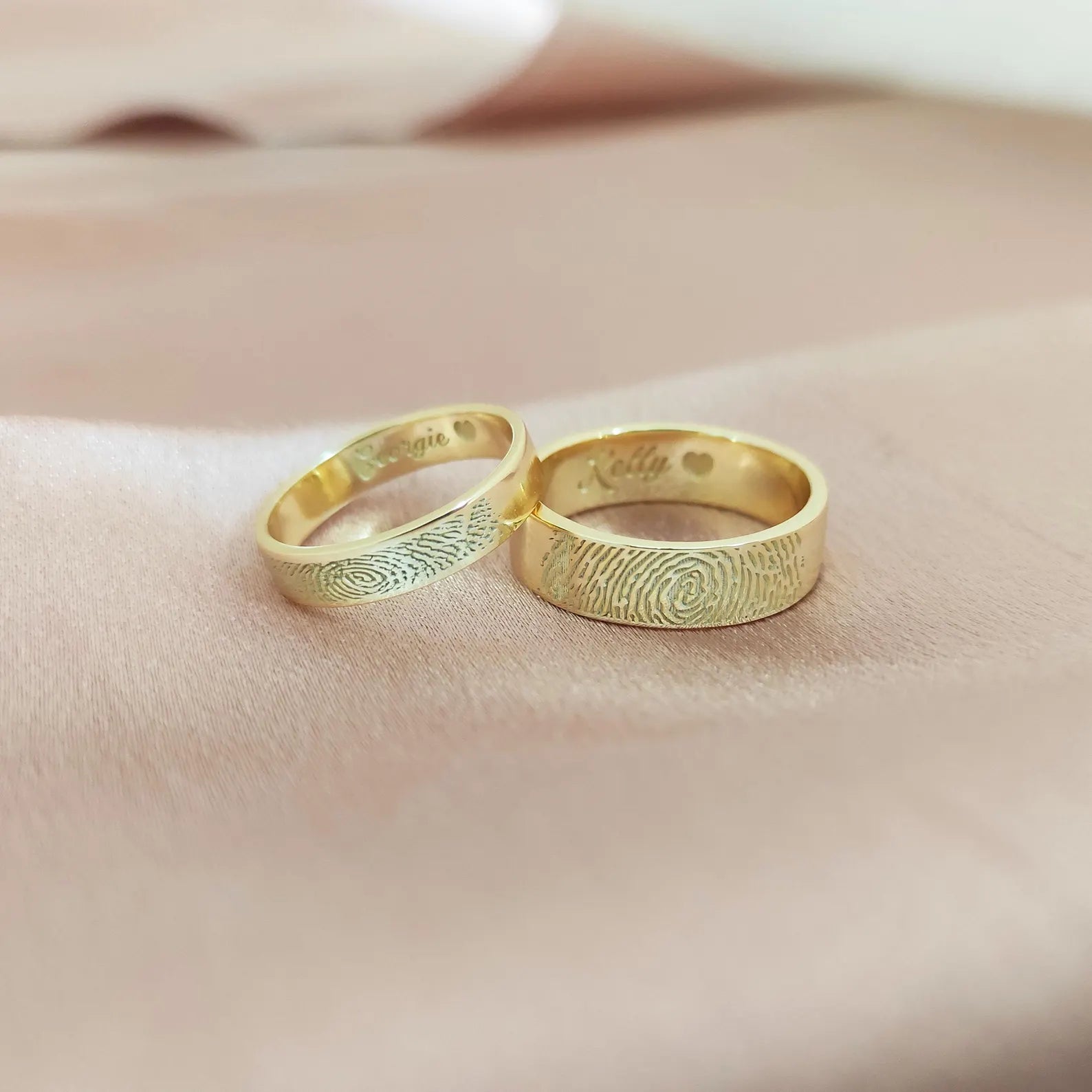 Fingerprint Ring With Inside and Outside Text | Set of 2 for Male and Female