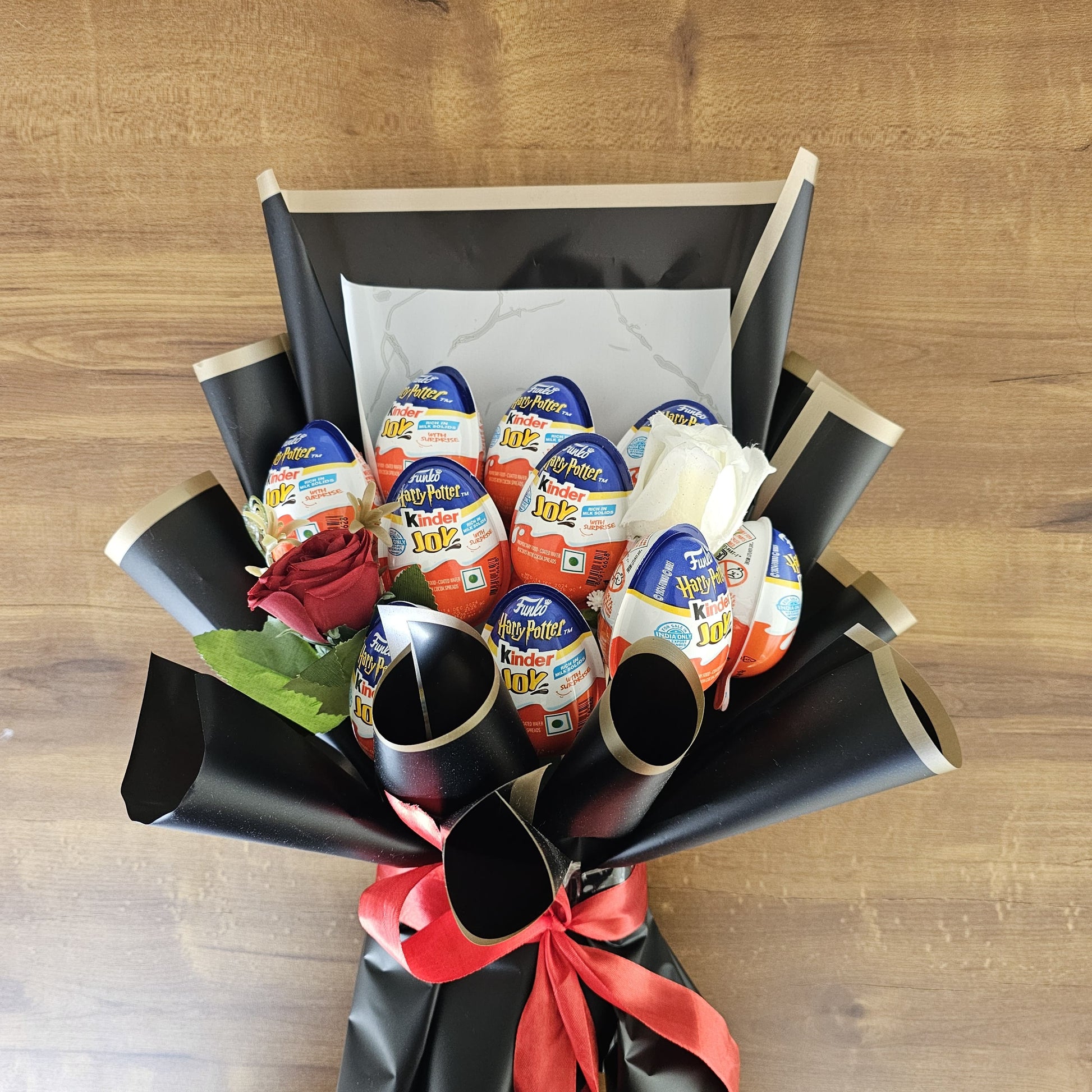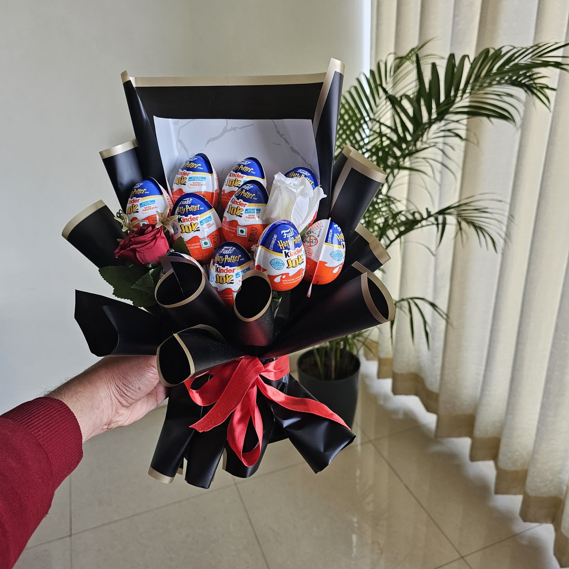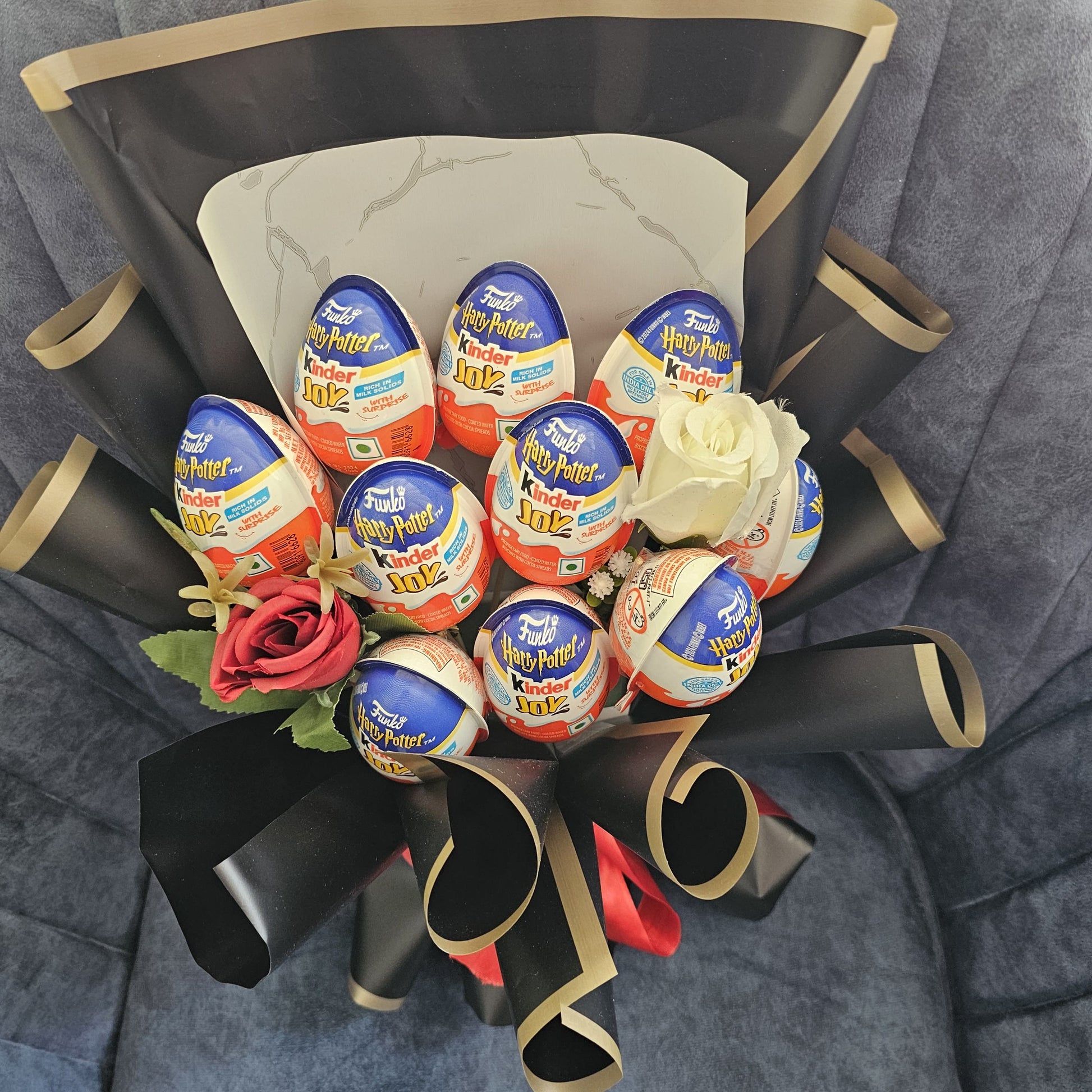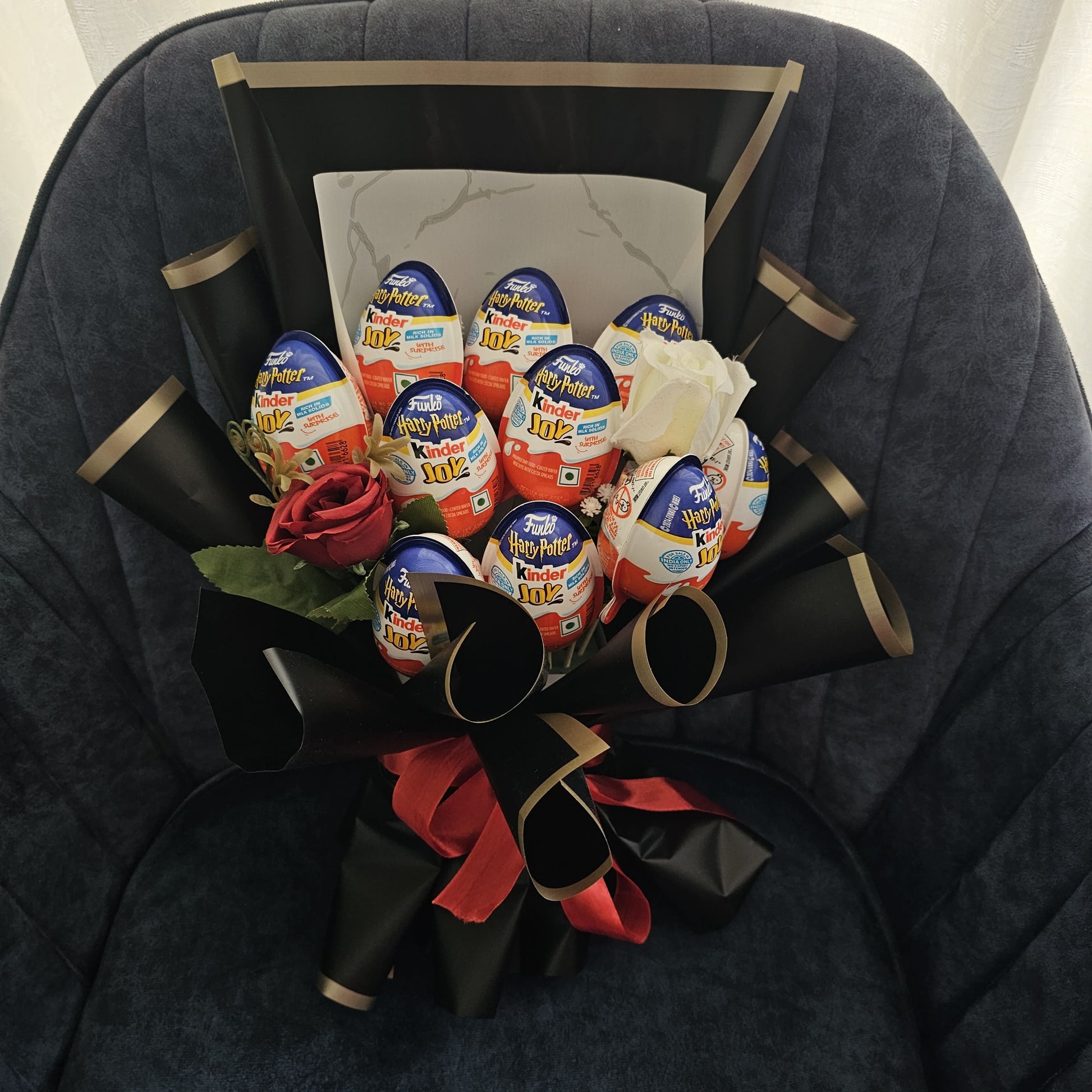 The Harry Potter Collector’s KinderJoy Bouquet is a perfect blend of magic and sweetness, designed to delight Harry Potter fans and chocolate lovers alike. Featuring a selection of Harry Potter-themed Kinder Joy, this unique bouquet is elegantly wrapped in luxurious paper. Accentuated by delicate faux flowers, it makes for an enchanting and sophisticated gift. Whether it’s a birthday, anniversary, or just a sweet surprise, this bouquet is sure to bring joy and a touch of wizardry to any special occasion. Treat your loved ones to this magical indulgence today.