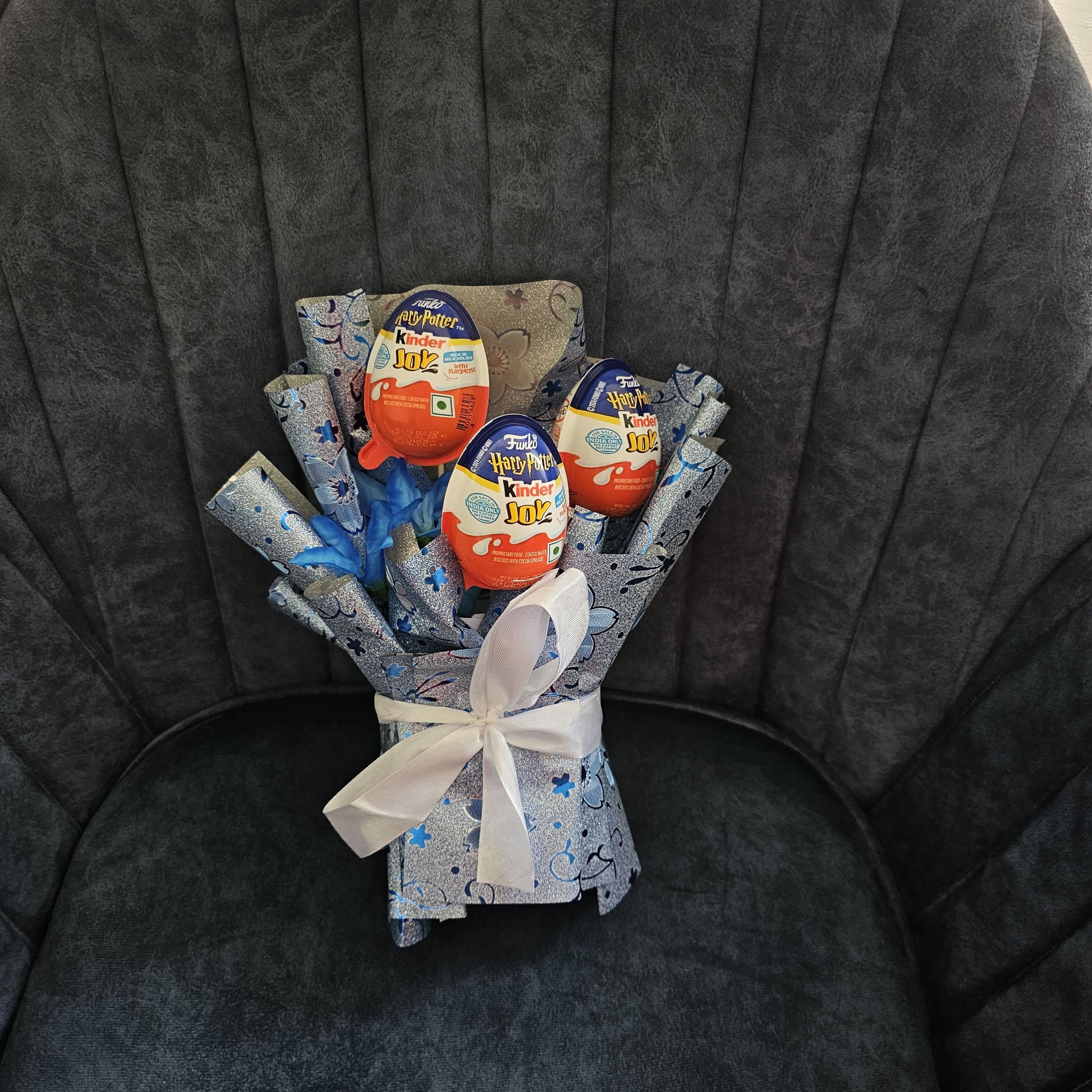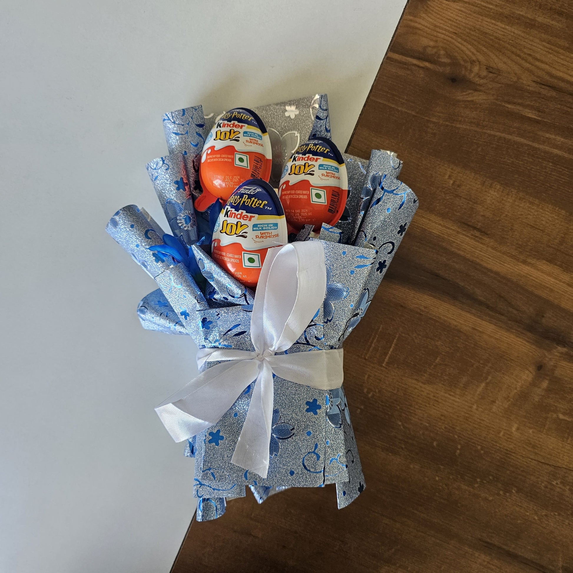 The Harry Potter Kinderjoy Wizard's Treat Bouquet is a perfect blend of magic and sweetness, designed to delight Harry Potter fans and chocolate lovers alike. Featuring a selection of Harry Potter-themed Kinder Joy, this unique bouquet is elegantly wrapped in luxurious paper. Accentuated by delicate faux flowers, it makes for an enchanting and sophisticated gift. Whether it’s a birthday, anniversary, or just a sweet surprise, this bouquet is sure to bring joy and a touch of wizardry to any special occasion. Treat your loved ones to this magical indulgence today.