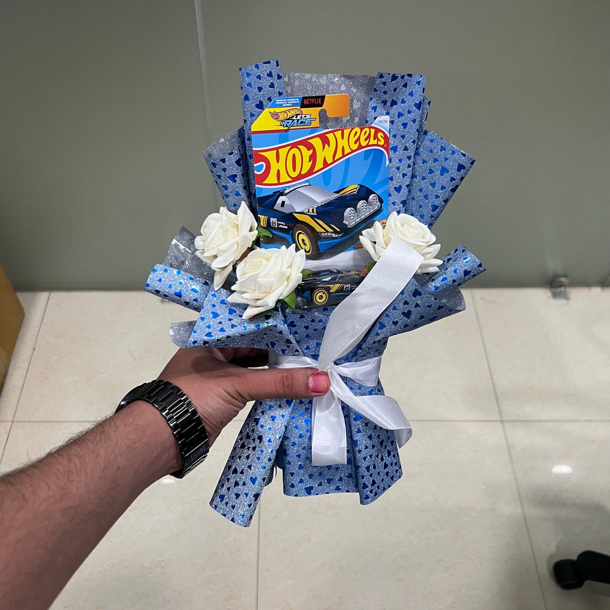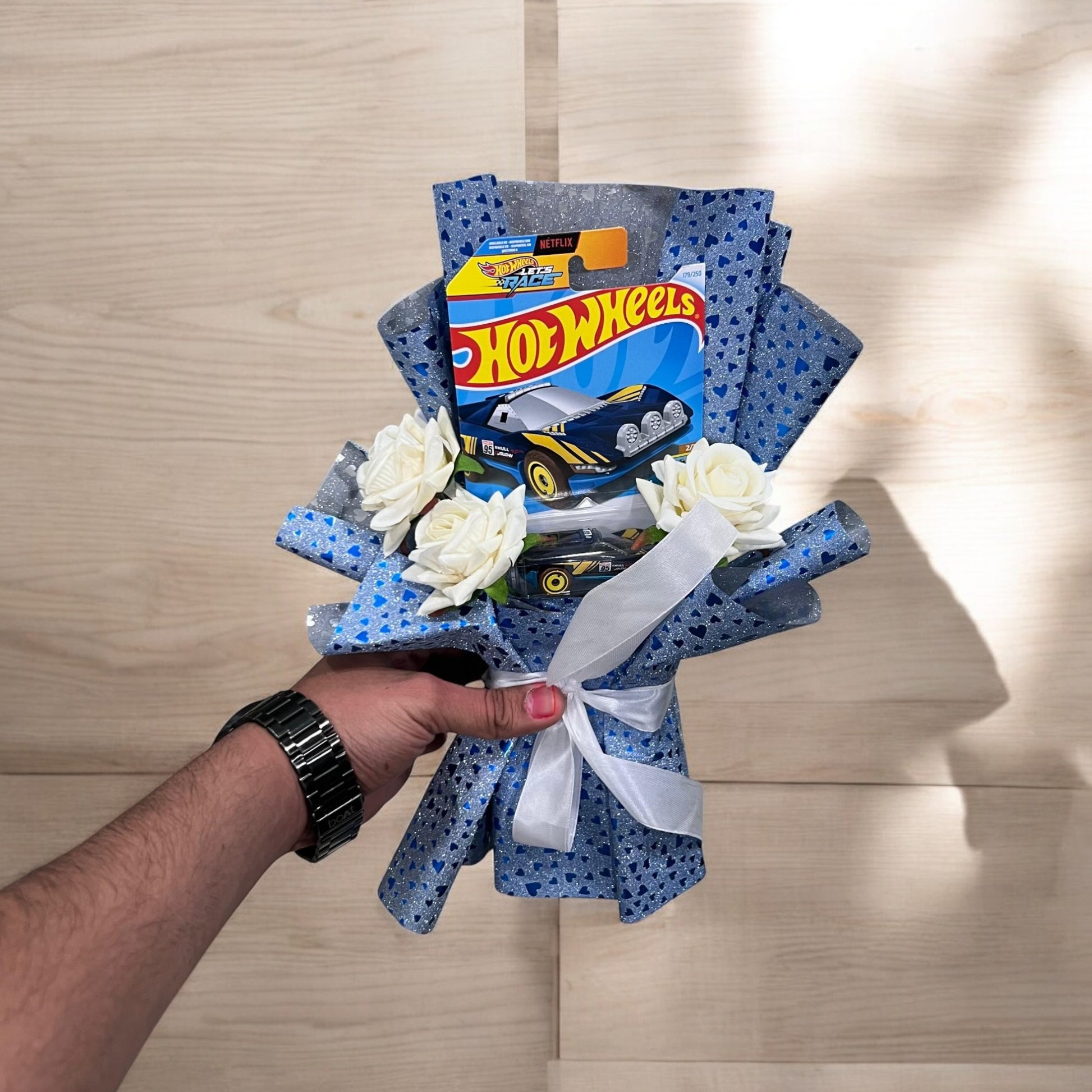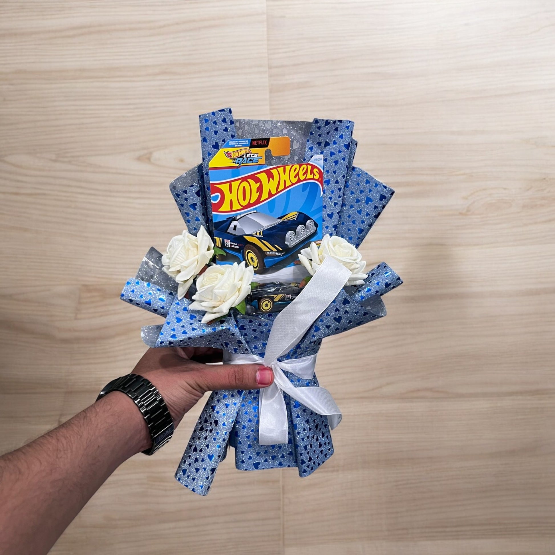 Perfect for birthdays, special occasions, or surprise gifts, this bouquet combines the thrill of racing with the charm of gifting, making it a standout present for any Hot Wheels fan.