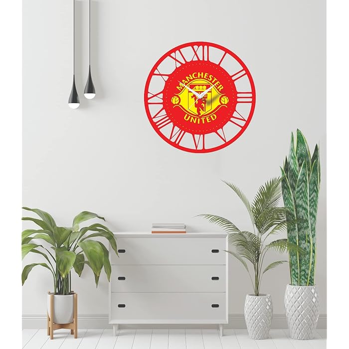 Manchester MUFC Football Designer MDF Wooden Crest Wall Clock