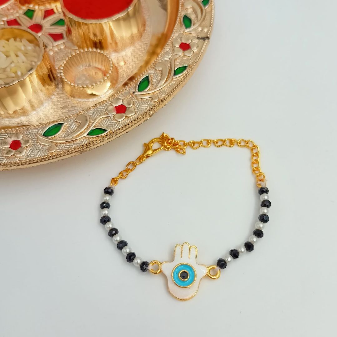 Handcrafted with care and paired with roli-chawal for a complete Raksha Bandhan ritual, the Mystic Eye Rakhi is more than just a thread — it’s a protective charm and a cherished token of love.
