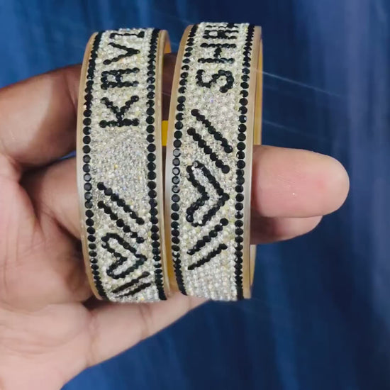 Add a touch of sparkle and personalization to your style with our Personalized Black Name Kada Bangle Set. Beautifully handcrafted with premium-quality stones, this kada set features your custom name in elegant black stones, making it a truly eye-catching and meaningful accessory. The perfect blend of glamour and individuality, this set is ideal for gifting or personal wear — turning your name into a statement of style.