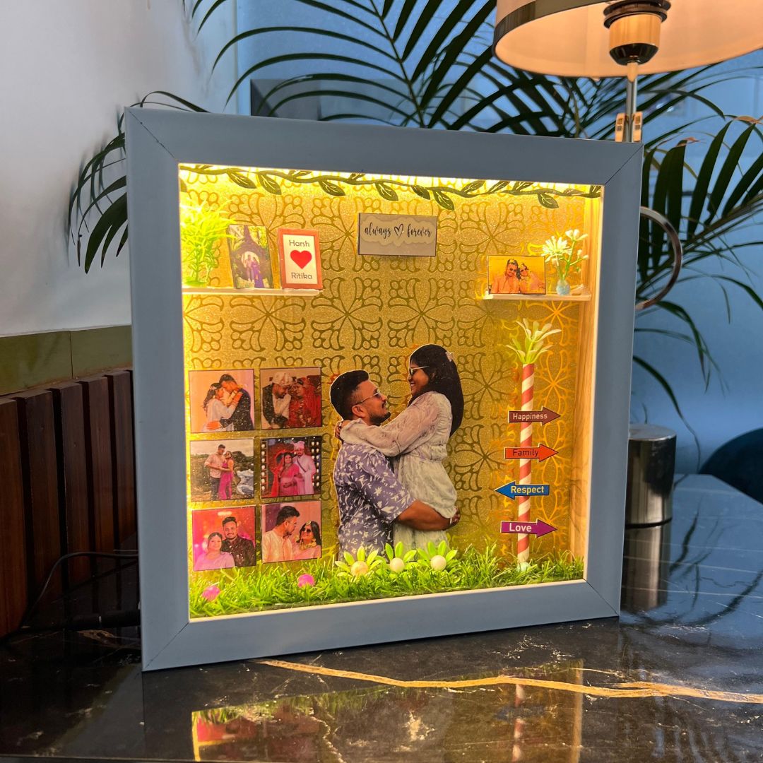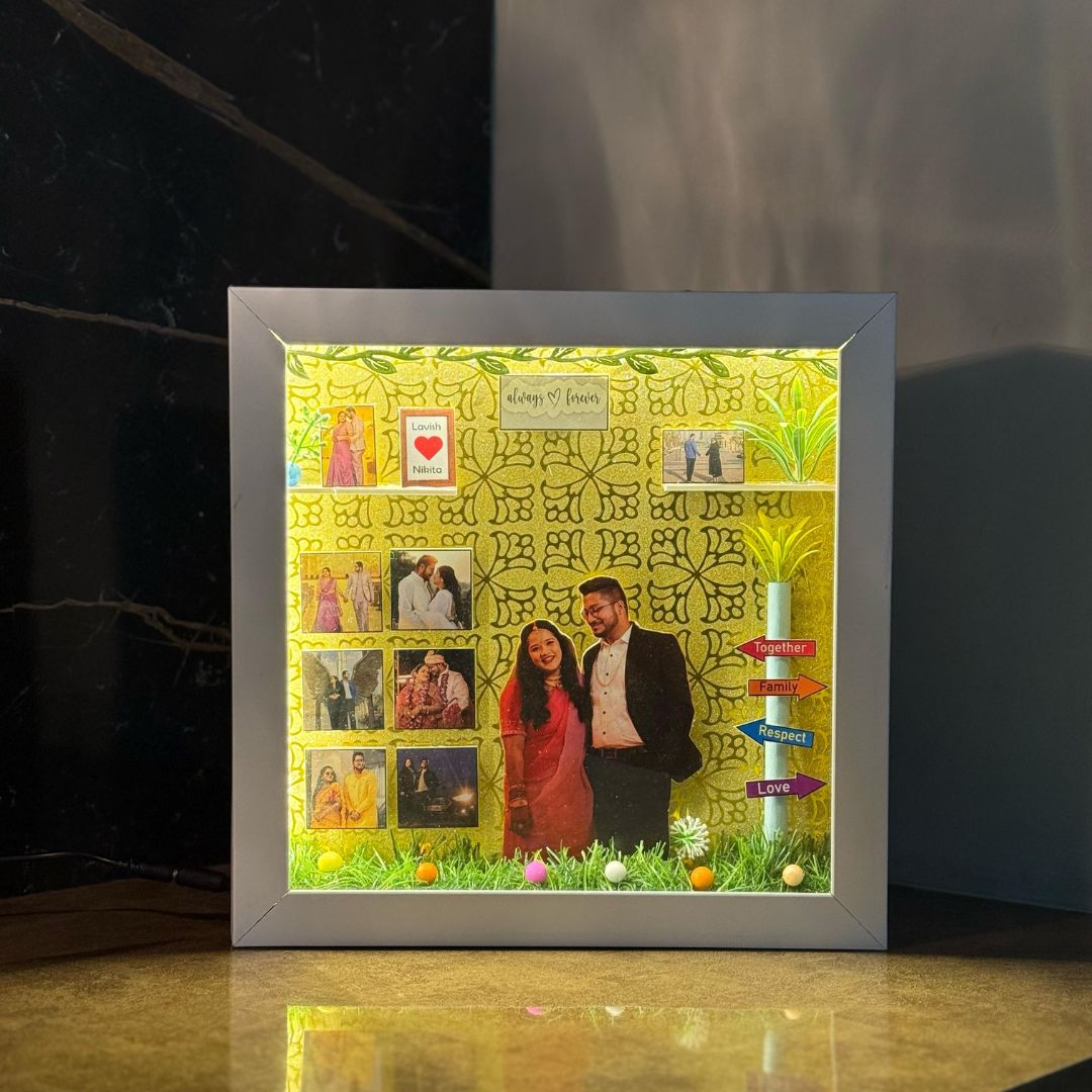 Light up your memories with our stunning Personalized LED Photo Frame! This handcrafted masterpiece is designed to make your special moments even more magical. Featuring a custom collage of your favorite photos, 3D cutouts, and warm LED lighting, this frame adds a beautiful glow to any space.