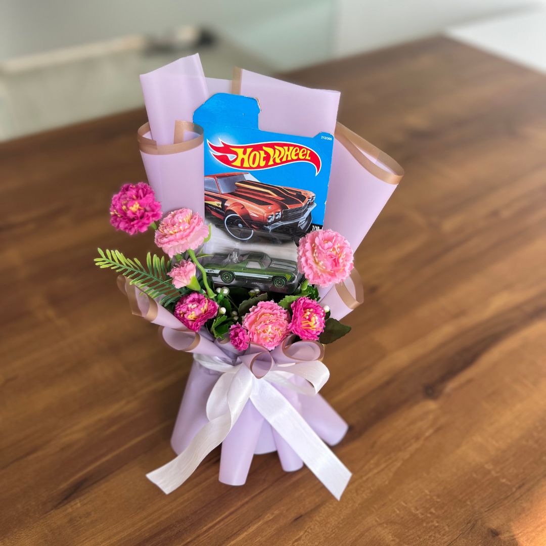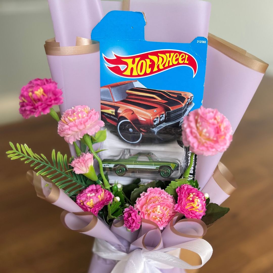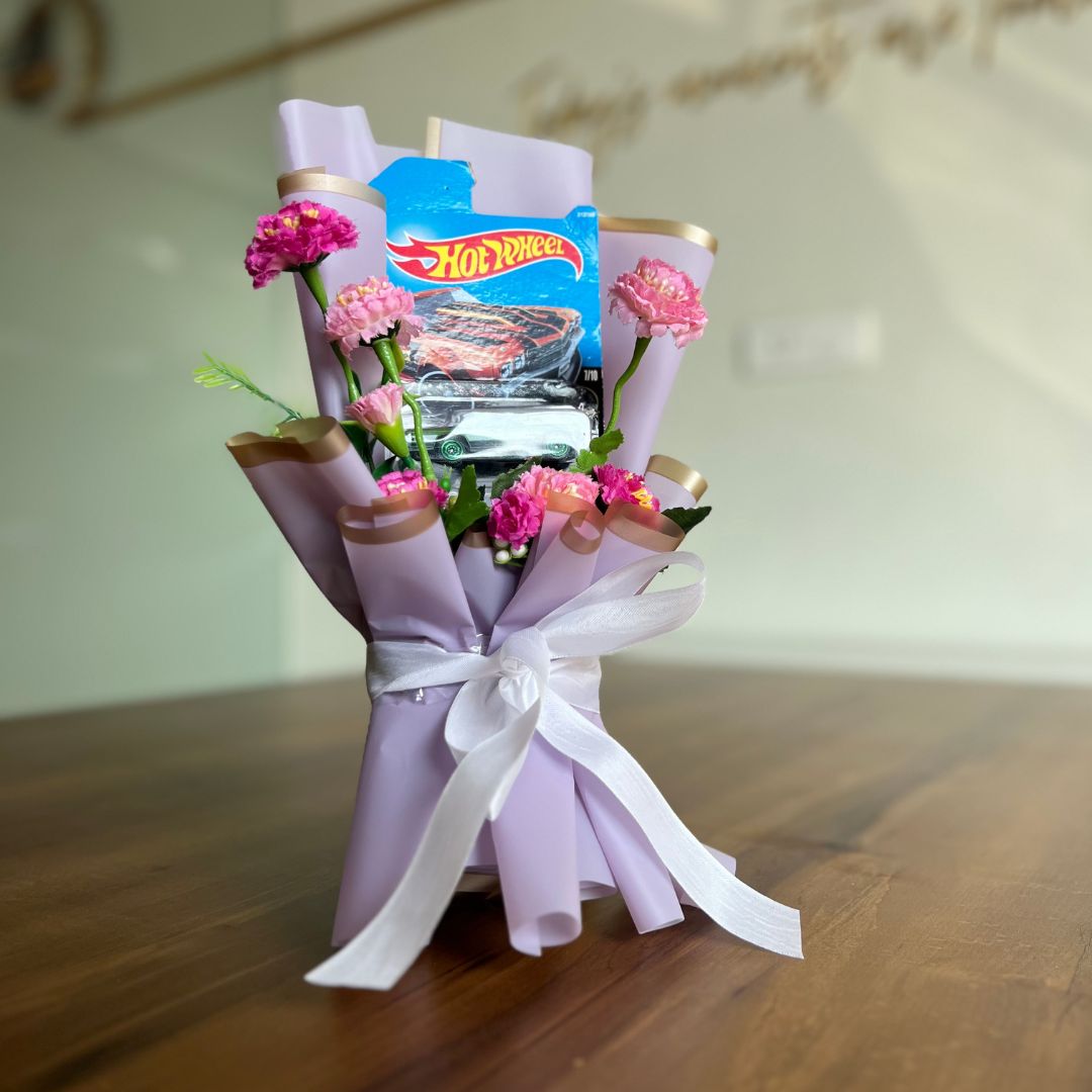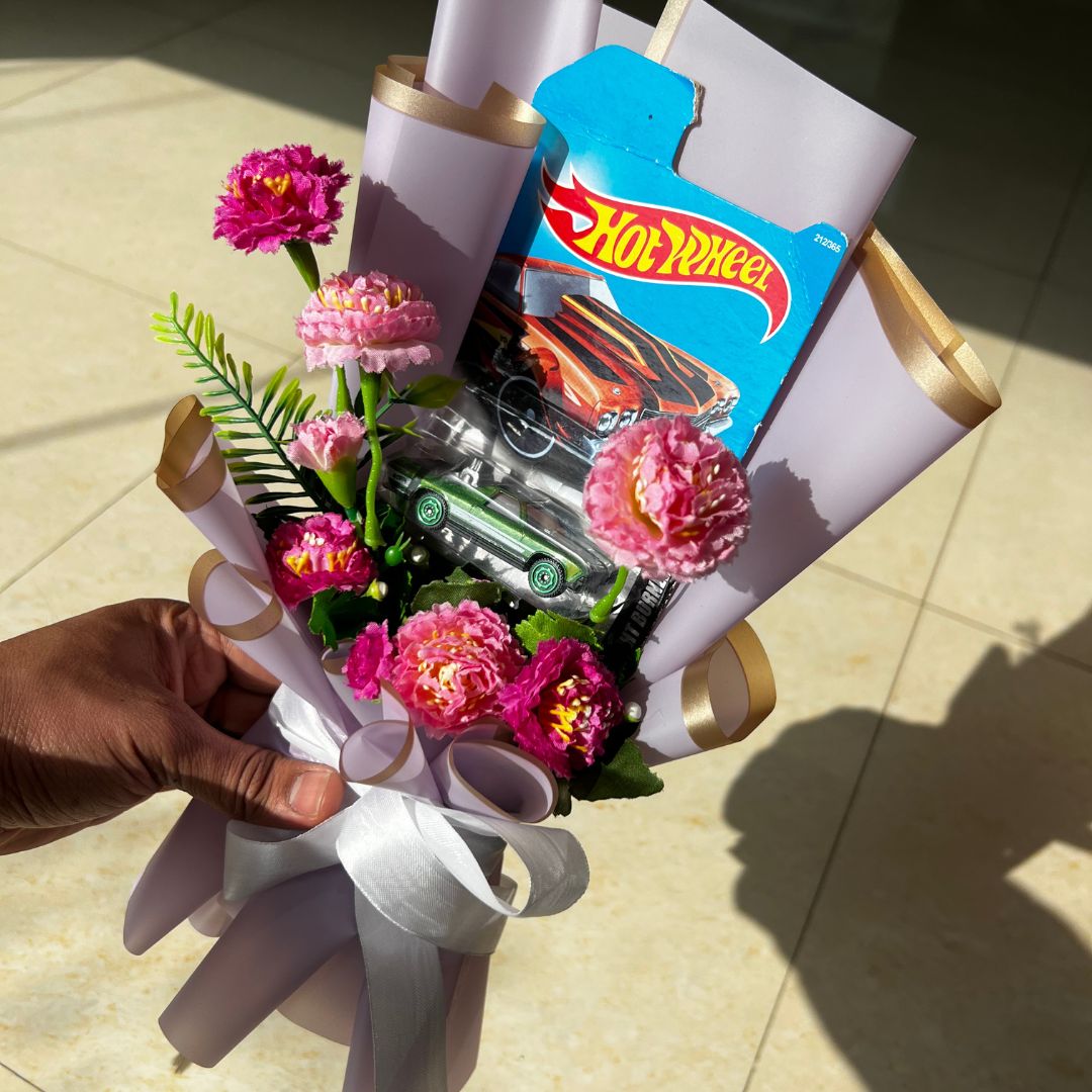 Looking for the perfect gift that combines elegance and fun? Our Premium Hotwheels Bouquet is a creative twist on traditional bouquets, featuring vibrant artificial flowers paired with an iconic Hotwheels car. Beautifully wrapped in premium pastel paper and finished with elegant ribbons, this bouquet is the ultimate choice for car enthusiasts and collectors.