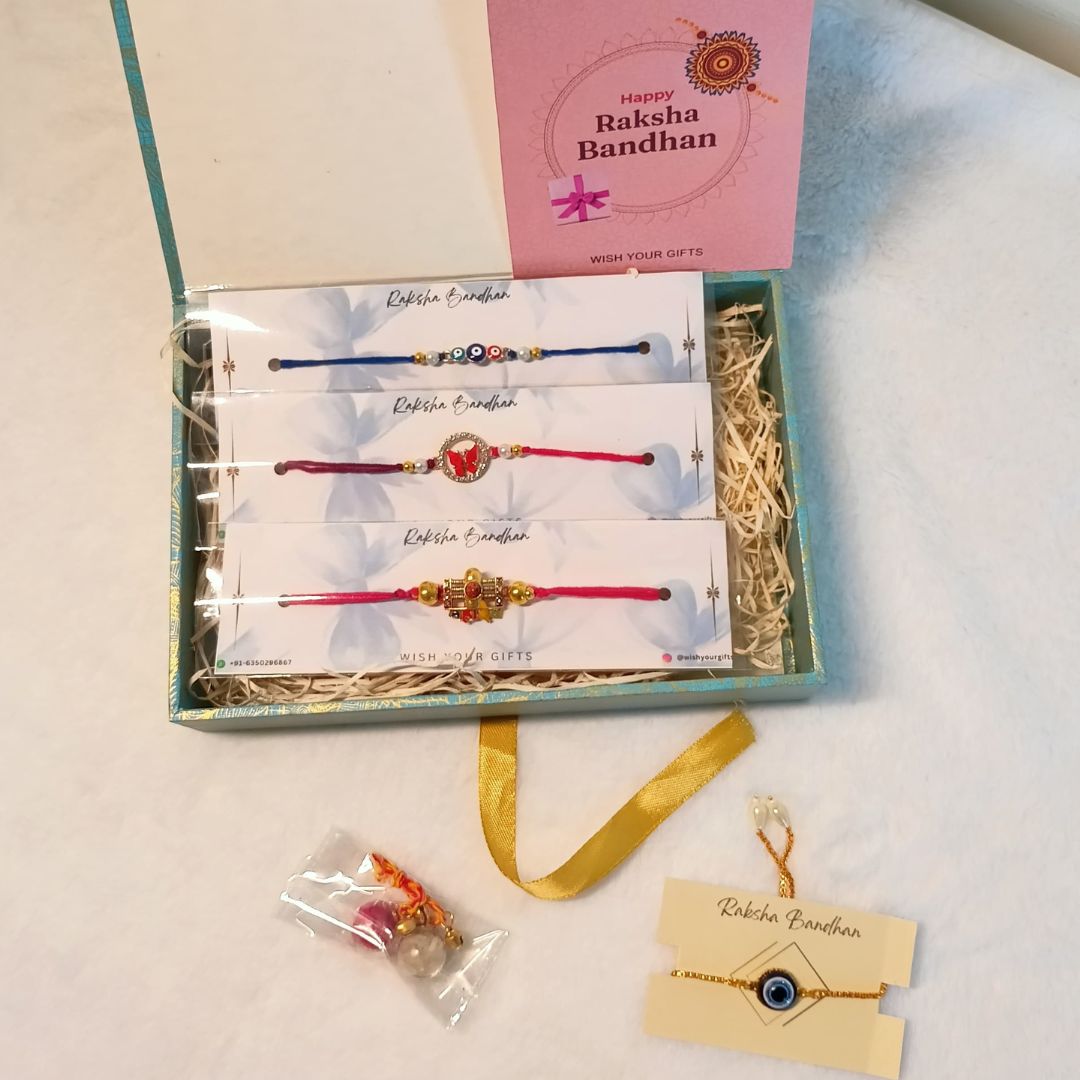 ✨ Trendy Trio Rakhi – A stylish set of three modern rakhis to suit every look, from casual to festive.