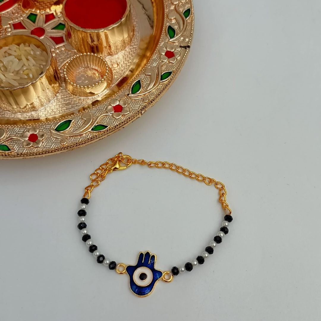 Honor the sacred bond you share with your brother through our Raksha Drishti Rakhi, a powerful symbol of love, protection, and divine vision. Inspired by the age-old belief in the “drishti” or evil eye, this rakhi is designed to ward off negativity and shield your brother with positive energy and blessings.