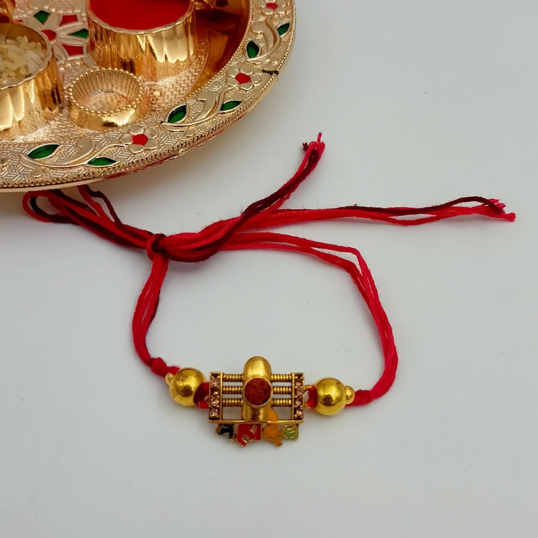 Celebrate the divine bond of love and protection with our Rudraksh Raksha Rakhi, thoughtfully designed to embody spiritual strength, purity, and tradition. Featuring the sacred Rudraksh bead, known for its powerful protective and healing properties, this rakhi blends timeless devotion with elegant design. The intricate craftsmanship reflects the dedication of skilled artisans, making it a meaningful gift for a brother rooted in culture and faith.
