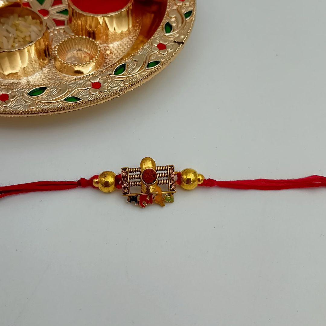 Whether you're tying it in person or sending it across distances, this rakhi is a heartfelt expression of love and blessings. It comes with roli-chawal for a complete and sacred Raksha Bandhan celebration.